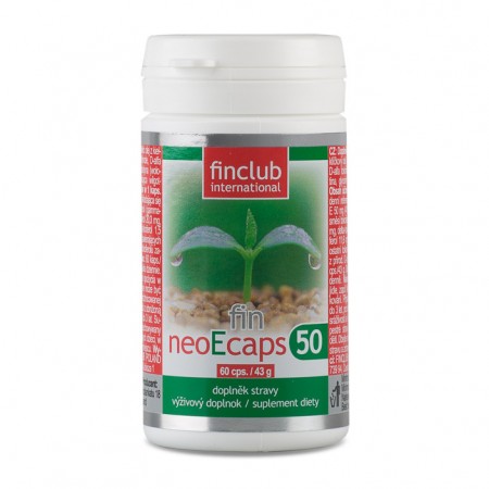 Suplement diety fin NeoEcaps 50 jest źródłem witaminy E pozyskanej z oleju z kiełków.